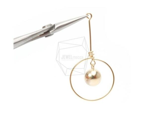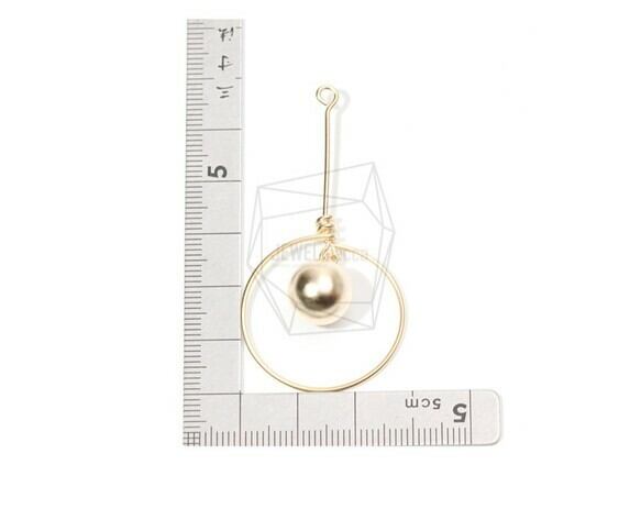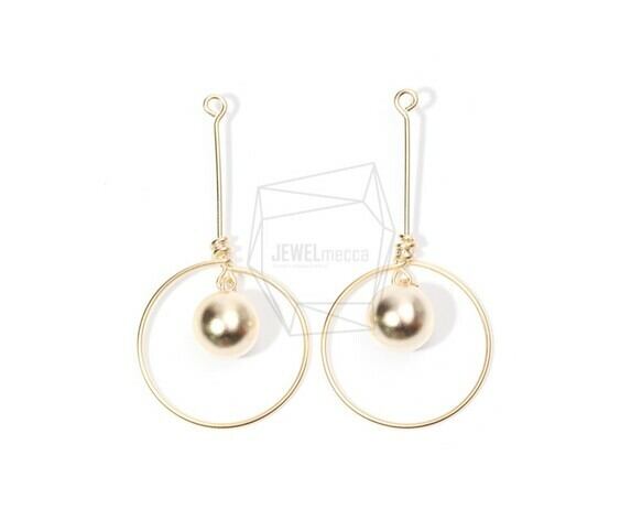 ERG-702-MG/2PCS/Long Bar Dangling Circle Earring Charm/30mm X 60mm/Matte Gold Plated Over Brass
