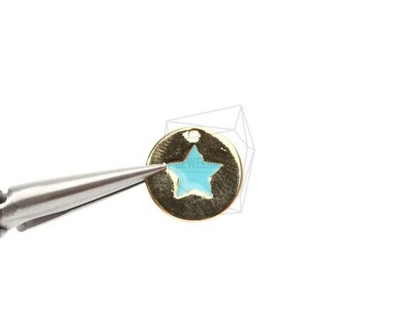 PDT-1454-G/2PCS/Star Epoxy(Sky Blue) Disk Pendant/15mm X 15mm/Gold Plated Over Brass, Epoxy