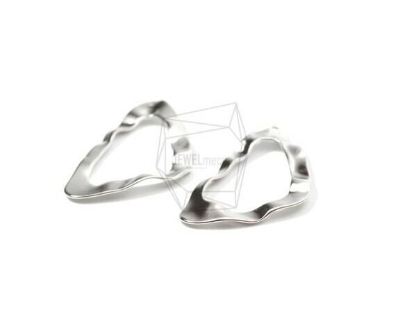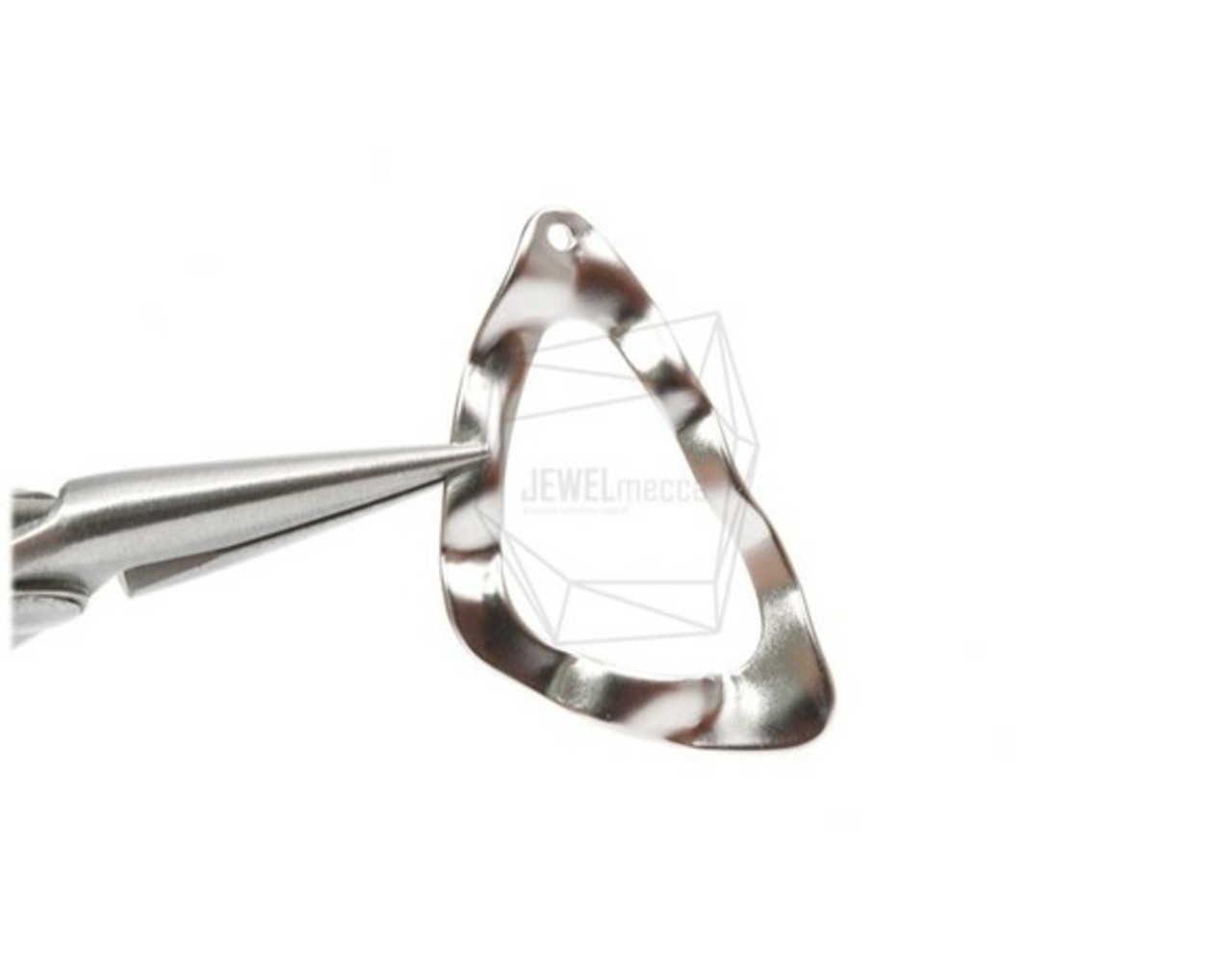 PDT-1482-MR/2PCS/Triangle Outline Hammered Texture Pendant/20mm X 35mm/Matte Rhodium Plated Over Brass