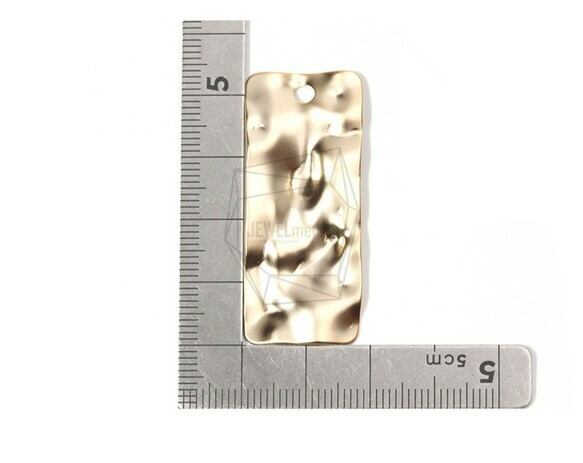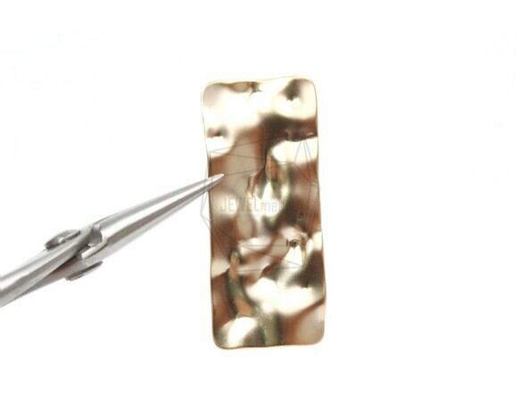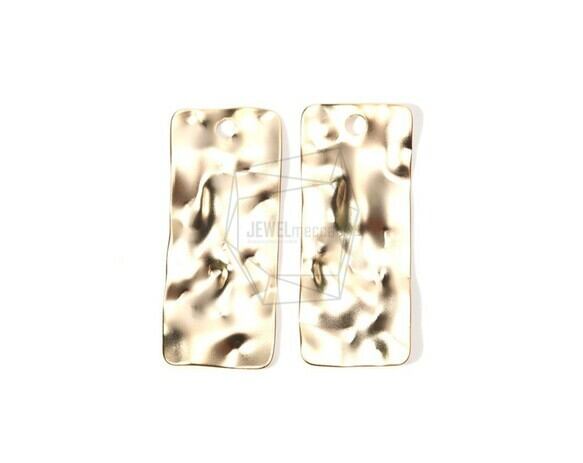 PDT-1483-MG/2PCS/Rectangle bar Hammered Texture Pendant/20mm X 45mm/Matte Gold Plated Over Brass
