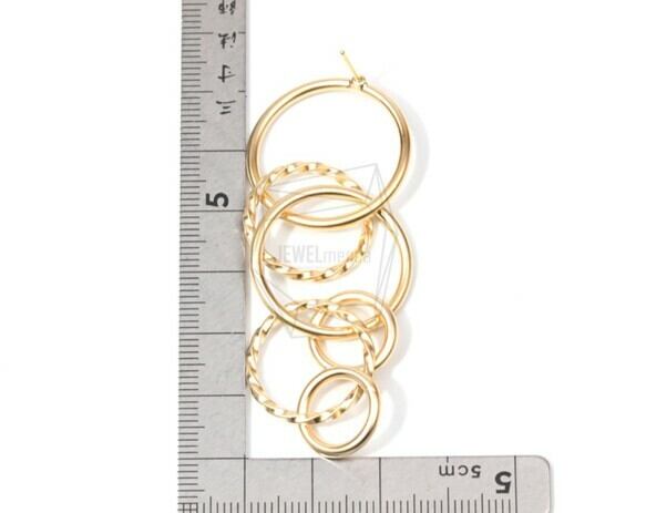 ERG-657-MG/2PCS/Multiple Linked Rings Post Earring/25mm X 65mm/Matte Gold Plated Over Brass