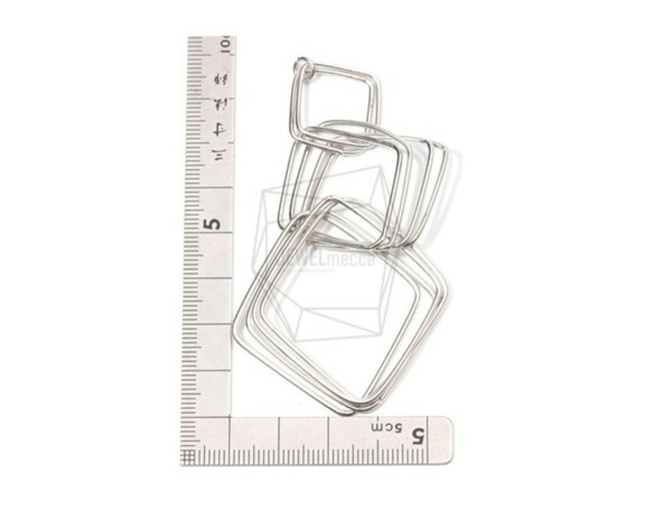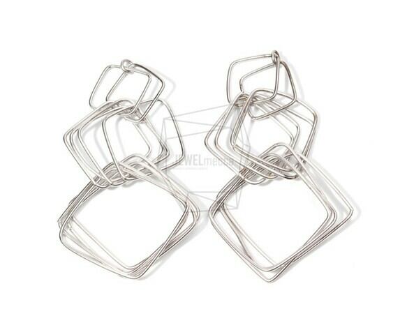 ERG-699-MR/2PCS/Layered Rhombus Dangle Earring Charm/50mm X 85mm/Matte Rhodium Plated Over Brass