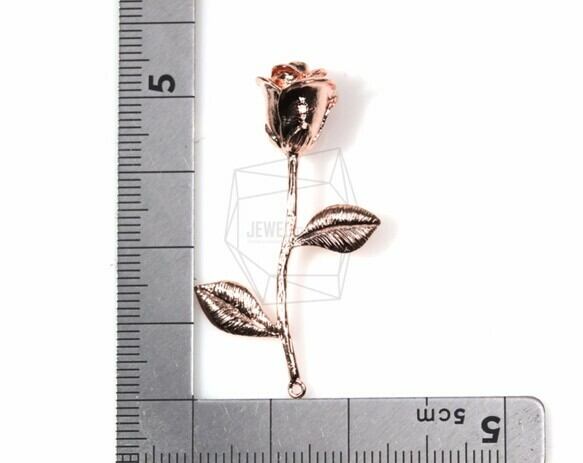 PDT-1075-MPG/2PCS/Rose Stem Pendant/25mm x 44mm/Matte Rose Gold Plated over Brass