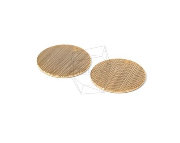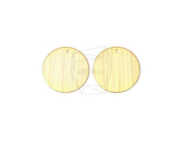 PDT-1358-MG/2PCS/Round Disk Brushed Texture Pendant/20mm X 20mm/Matte Gold Plated Over Brass