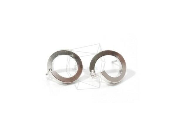 ERG-703-MR/2PCS/Open Circle Post Earring/15mm X 15mm/Matte Rhodium Plated Over Brass/Titanium post