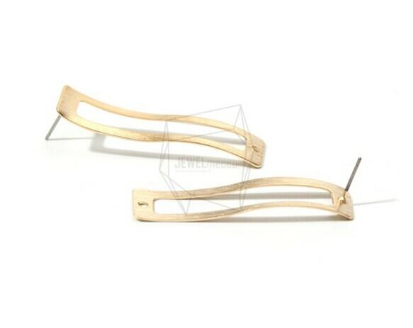ERG-705-MG/2PCS/Rectangle Bar Post Earring/12mm X 45mm/Matte Gold Plated Over Brass/Titanium post
