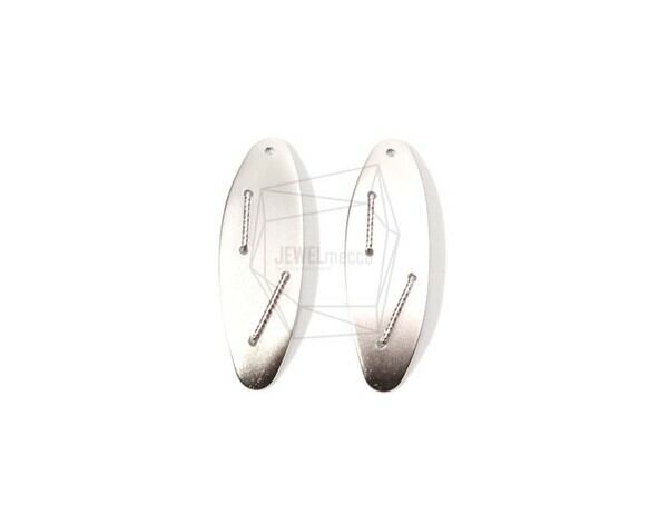 PDT-1497-MR/2PCS/Curved Oval Pendant/10mm X 35mm/Matte Rhodium Plated Over Brass