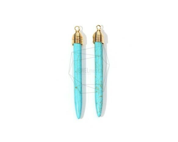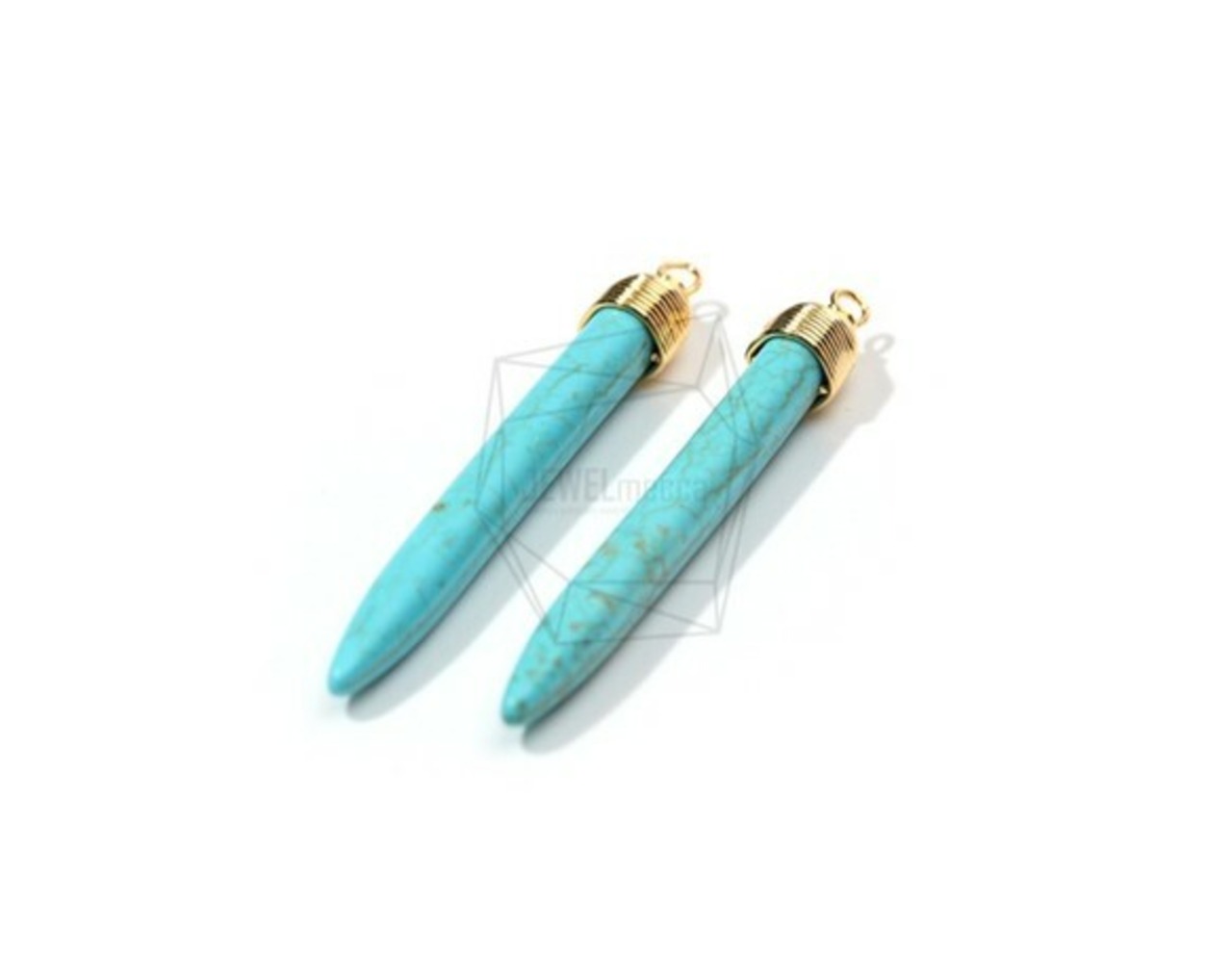 STO-068-G/2PCS/Turquoise Horn Pendant/10mm X 55mm/Gold Plated Over Brass , Turkish Stone