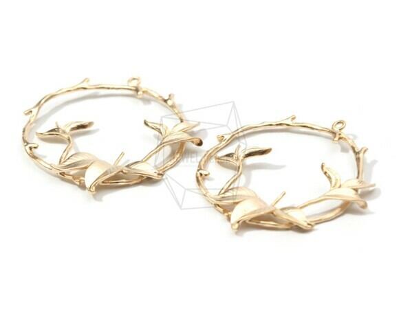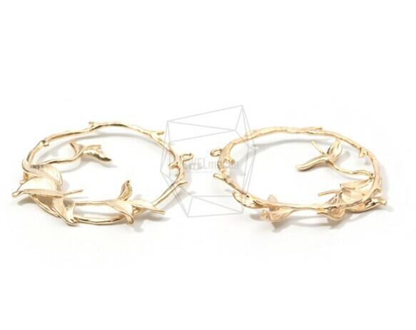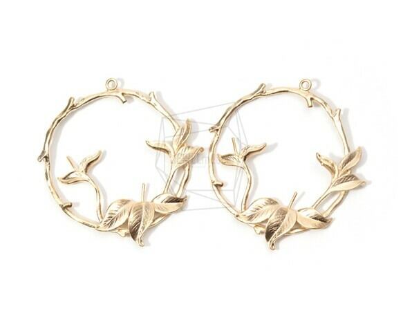 PDT-1505-MG/2PCS/Round Leaf Branch Pendant/40mm X 40mm/Matt Gold Plated Over Brass