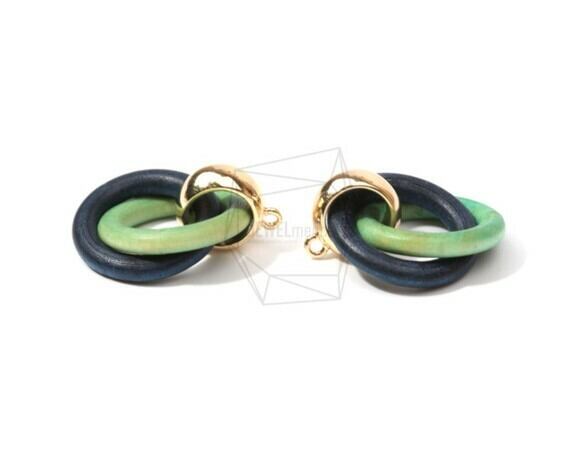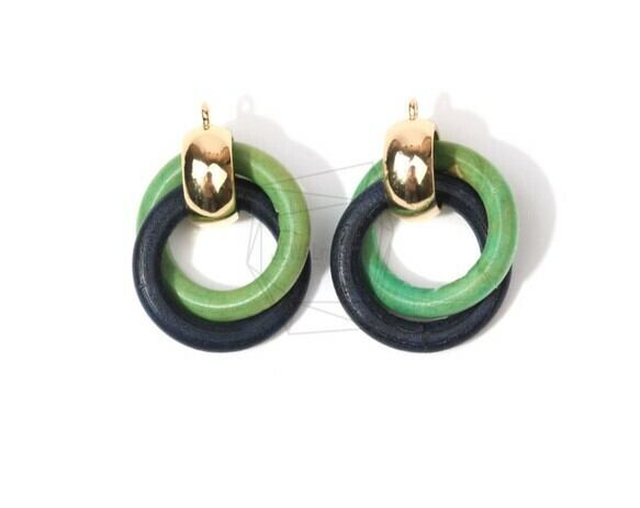 BSC-485-G/2pcs/Double ring Wooden Charm /25mm x 33mm/Handmade wooden round beads