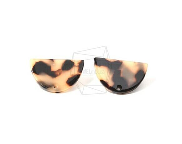 ERG-716-G/2PCS/Semicircle Post Earring/30mm X 17mm/Mix Celluloid/ Titanium post