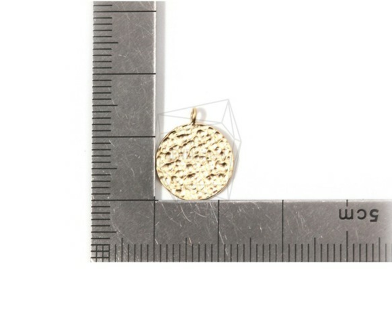 PDT-1502-MG/2PCS/Round Disk Hammered Texture Pendant/12mm X 15mm/Matte Gold Plated Over Brass