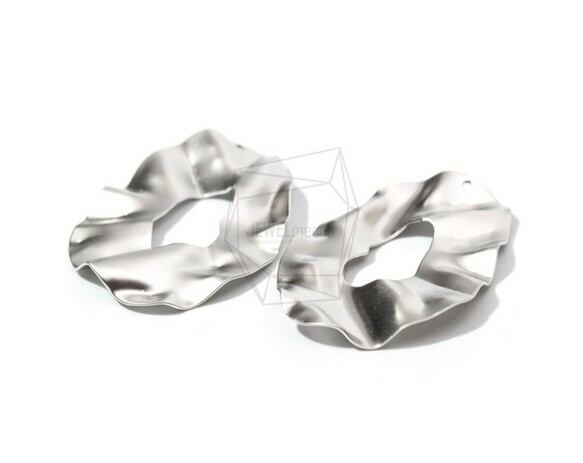 PDT-1522-MR/2PCS/Wavy Oval Pendant/30mm X 45mm/Matte Rhodium Plated Over Brass