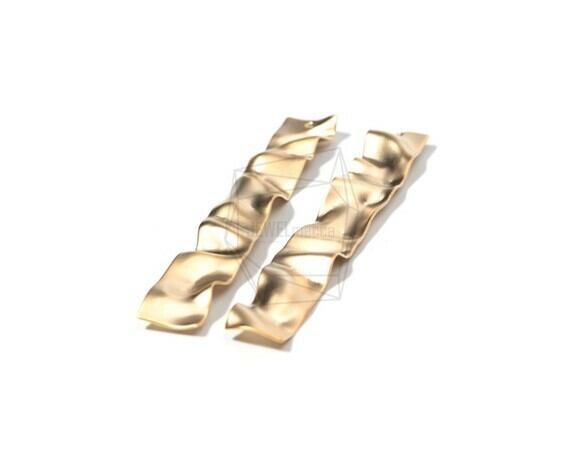PDT-1526-MG/2PCS/Wavy Long Bar Pendant/10mm X 65mm/Matte Gold Plated Over Brass