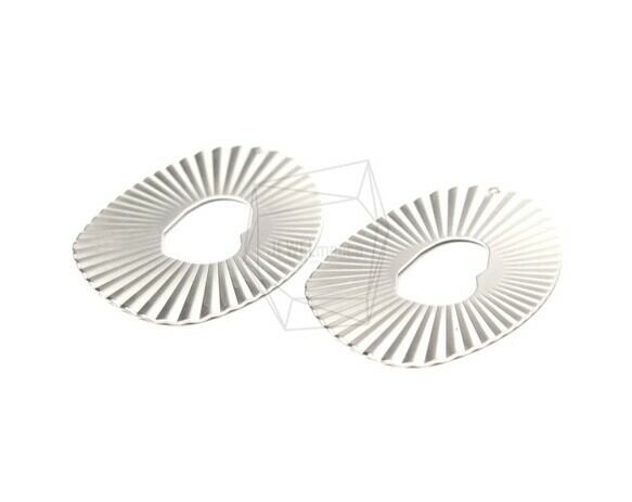 PDT-1528-MR/2PCS/oval Fan Style Pendant/30mm X 45mm/Matte Rhodium Plated Over Brass