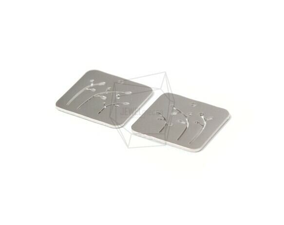 PDT-1533-MR/2PCS/Tree pendant/20mm X 20mm/Matte rhodium Plated Over Brass