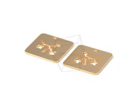 PDT-1535-MG/2PCS/Flower Branch Pendant/18mm X 18mm/Matte Gold Plated Over Brass