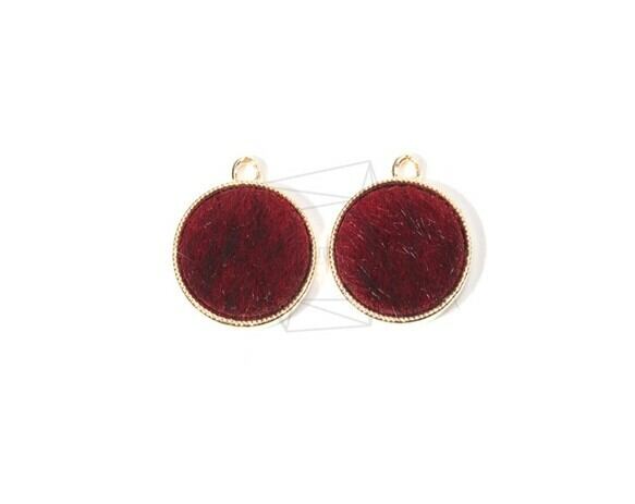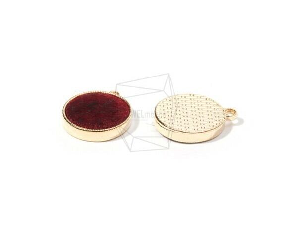PDT-1543-G/4PCS/Fabric Circle Pendant (Wine colour)/17mm X 20mm/Gold Plated Over Brass , Fabric