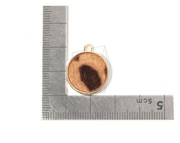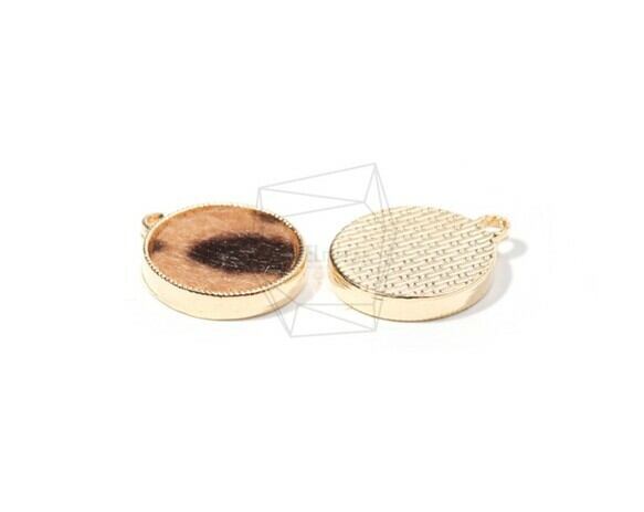 PDT-1544-G/4PCS/Fabric Circle Pendant (Beige&Brown)/17mm X 20mm/Gold Plated Over Brass , Fabric