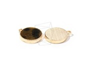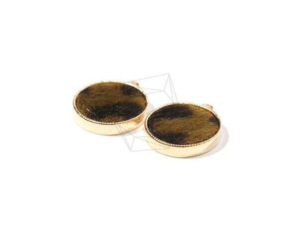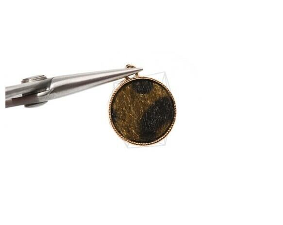 PDT-1547-G/4PCS/Fabric Circle Pendant (Black&Brown)/17mm X 20mm/Gold Plated Over Brass , Fabric