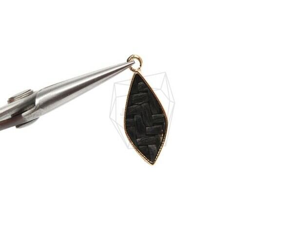 PDT-1548-G/2PCS/Rattan Diamond Shape Pendant (Black)/10mm X 25mm/Gold Plated Over Brass , Rattan