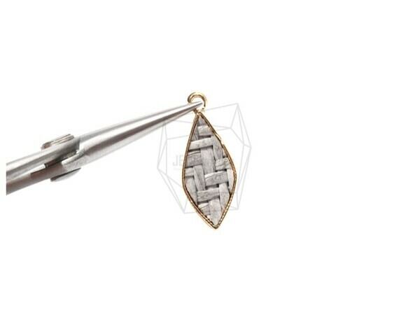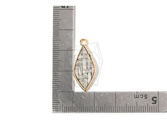 PDT-1550-G/4PCS/Rattan Diamond Shape Pendant (Grey)/10mm X 25mm/Gold Plated Over Brass , Rattan