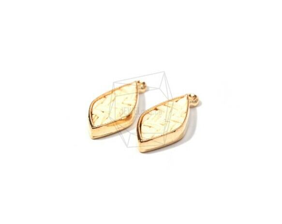 PDT-1551-G/4PCS/Rattan Diamond Shape Pendant (Light Yellow)/10mm X 25mm/Gold Plated Over Brass , Rattan