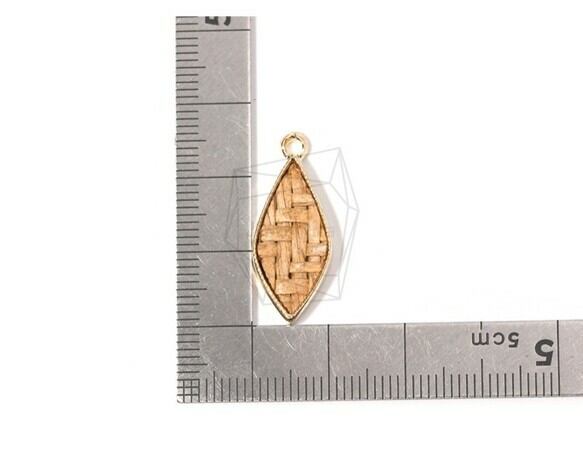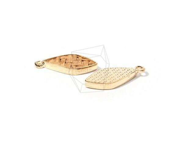 PDT-1552-G/4PCS/Rattan Diamond Shape Pendant (Light Brown)/10mm X 25mm/Gold Plated Over Brass , Rattan