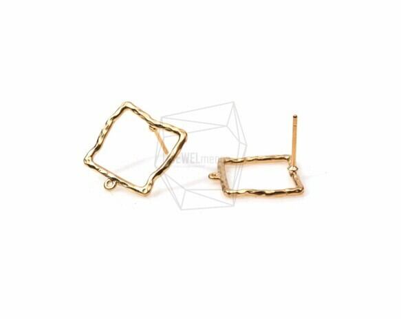 ERG-539-MG/2PCS/Hammered Square Ear Post/15mm x 15mm/Matte Gold Plated over Brass