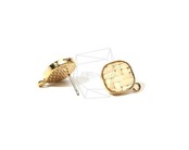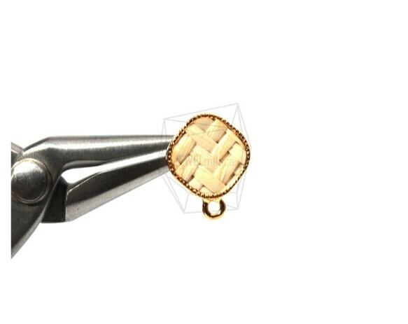 ERG-732-G/2PCS/Round Edge Rhombus Rattan Post Earring(Light Yellow)/12mm X 15mm/Gold Plated Over Brass,Titanium Post,rattan