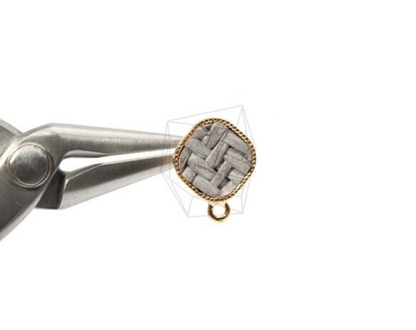 ERG-734-G/2PCS/Round Edge Rhombus Rattan Post Earring(Grey)/12mm X 15mm/Gold Plated Over Brass,Titanium Post,rattan