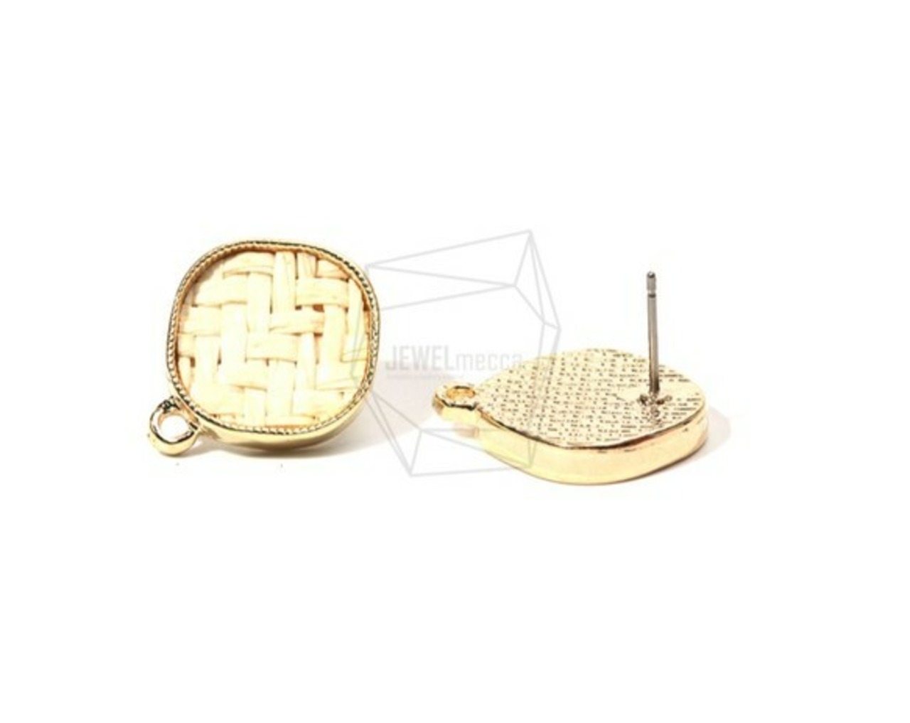 ERG-736-G/2PCS/Round Edge Rhombus Rattan Post Earring(Light Yellow)/17mm X 20mm/Gold Plated Over Brass,Titanium Post,rattan