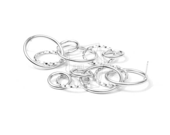 ERG-657-MR/2PCS/Multiple Linked Rings Post Earring/25mm X 65mm/Matte Rhodium Plated Over Brass