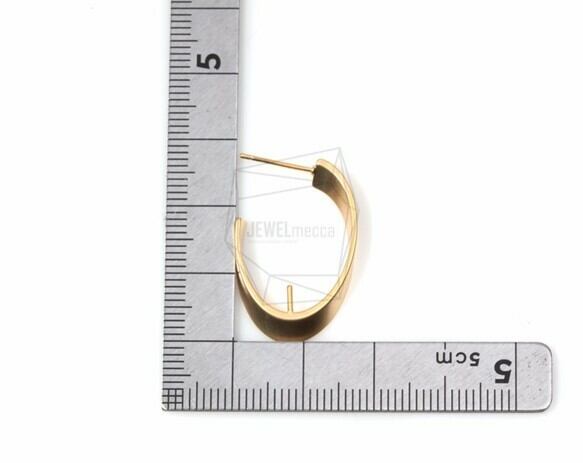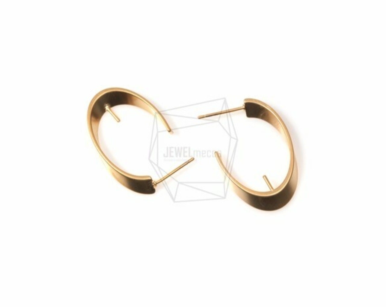 ERG-419-MG/Curved Wide Plate Hook Earring/17mm x 27mm/Matte Gold Plated over Brass