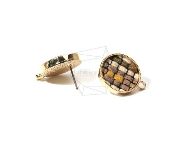 ERG-741-G/2PCS/Round Fabric Post Earring(Mix)/17mm X 20mm/Gold Plated Over Brass,Titanium Post,Fabric
