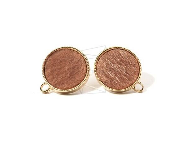 ERG-746-G/2PCS/Round Fabric Post Earring/17mm X 20mm/Gold Plated Over Brass,Titanium Post,Fabric