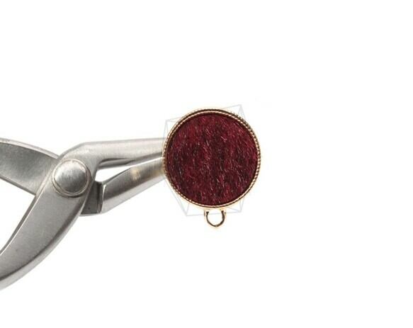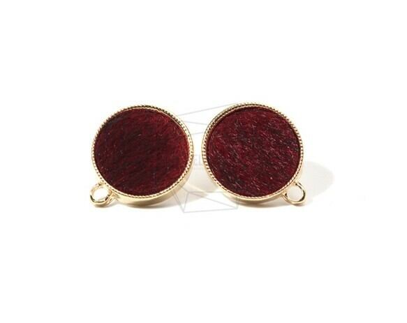 ERG-747-G/2PCS/Round Fabric Post Earring/17mm X 20mm/Gold Plated Over Brass,Titanium Post,Fabric