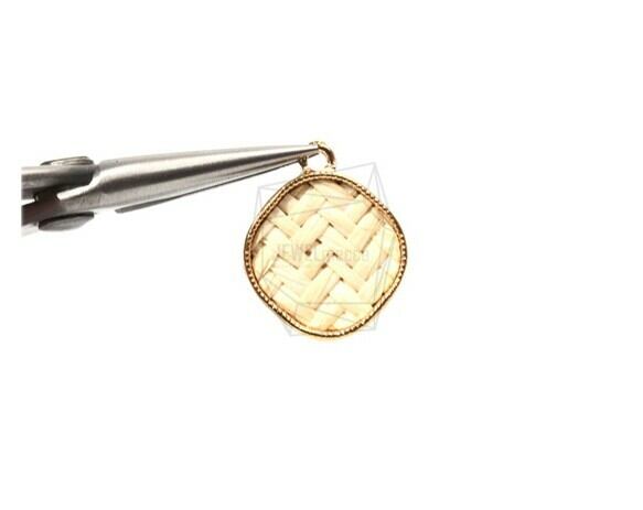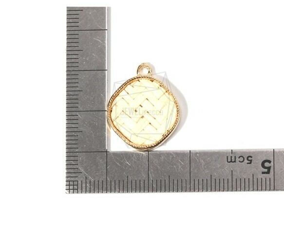 PDT-1553-G/2PCS/Round Edge Rhombus Rattan Pendant(Light yellow)/17mm X 20mm/Gold Plated Over Brass,rattan