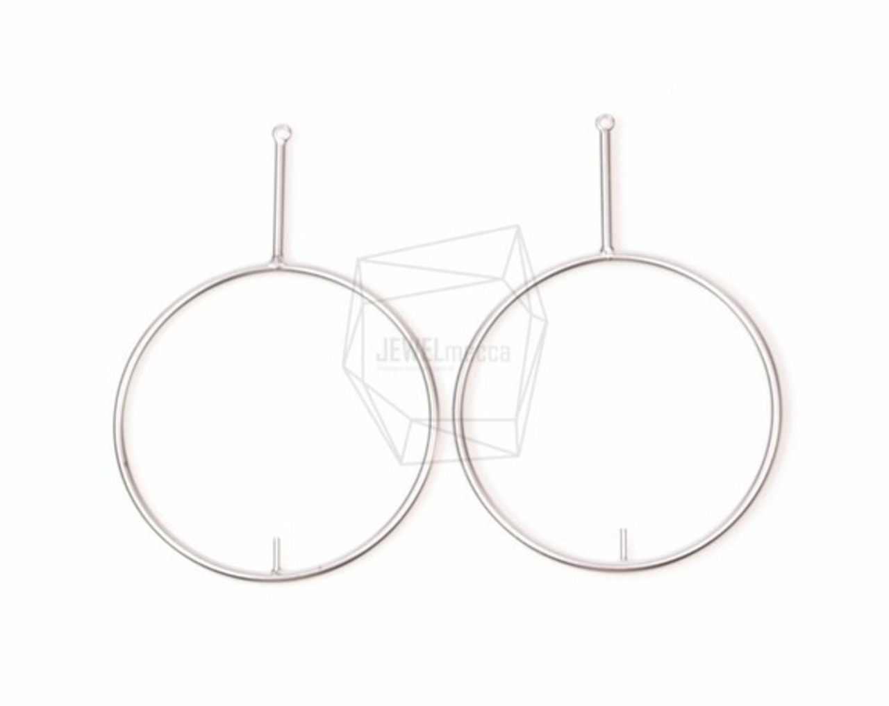 PDT-1208-MR/2PCS/Hoop With Short Bar Pendant/40mm x 57mm/Matte Rhodium Plated over Brass