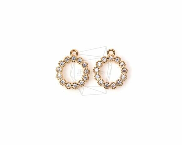 PDT-1226-G/2Pcs-Cubic Zirconia Setting round pendant / 11mm x 13mm/Gold Plated over brass