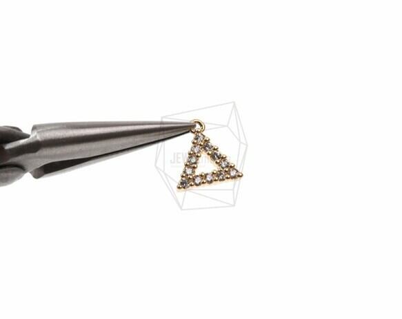 PDT-1227-G/2Pcs-Cubic Zirconia Setting triangle pendant / 9mm x 10mm/Gold Plated over brass