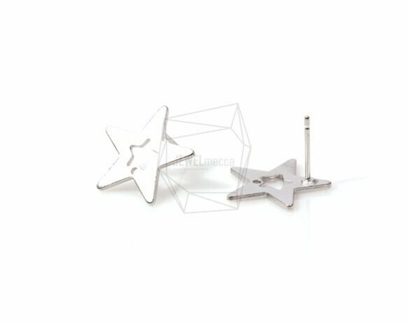ERG-502-MR/2PCS/Outline Star Post Earring/16mm x 16mm/Matte Rhodium Plated over Brass/Titanium post