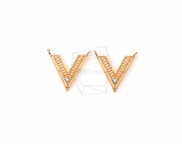 CNT-155-G/2PCS/Chevron CZ Charm/15mm x 12mm/Gold Plated over Brass