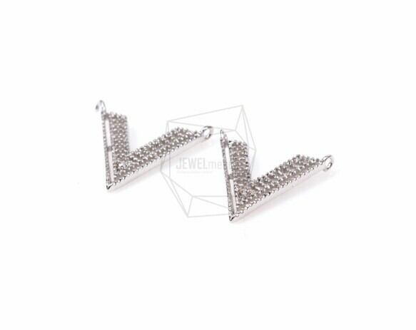 CNT-155-R/2PCS/Chevron CZ Charm/15mm x 12mm/Rhodium Plated over Brass