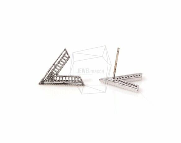 ERG-507-R/2PCS/CZ Chevron Earring Post/13mm x 13mm/Rhodium Plated over Brass/925 Sterling Silver Post