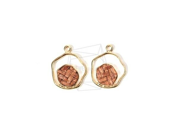 PDT-1561-G/2PCS/Round Edge Rhombus Rattan Pendant(Brown)/17mm X 20mm/Gold Plated Over Brass,rattan