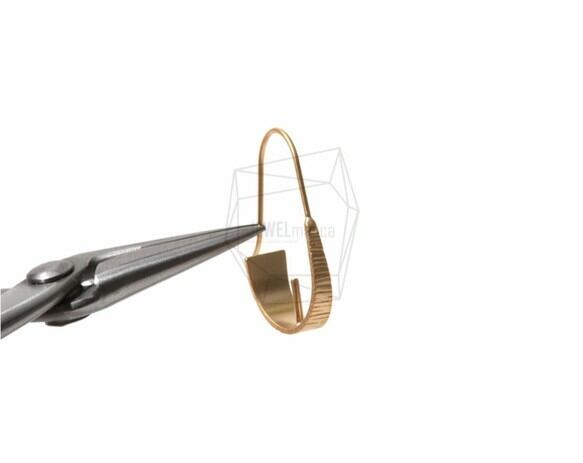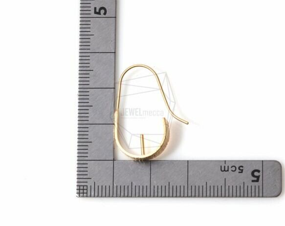 ERG-417-MG/2PCS/Textured Half Circle Earring Hook/15mm x 28mm/Gold Plated over Brass