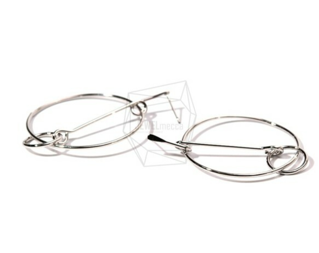ERG-519-R/2PCS/Double Ring Earring Post/50mm x 50mm/Rhodium over Brass/Titanium post