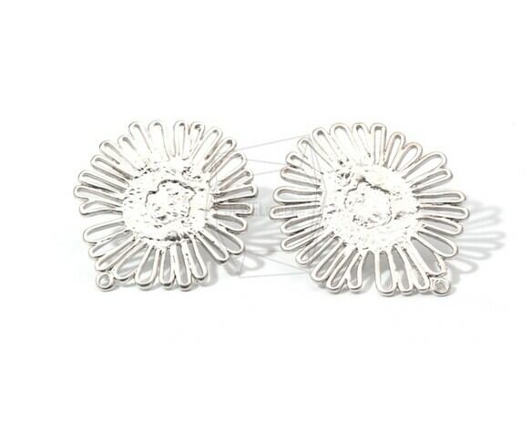 ERG-822-MR/2PCS/Hammered Sunflower Ear Post/29mm x 31mm/Matte Rhodium Plated over Brass/925 silver Post