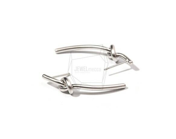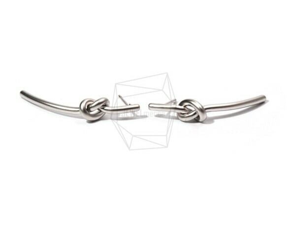 ERG-718-MR/2PCS/Knot Bar Post Earring/15mm X 35mm/Matte Rhodium Plated Over Brass